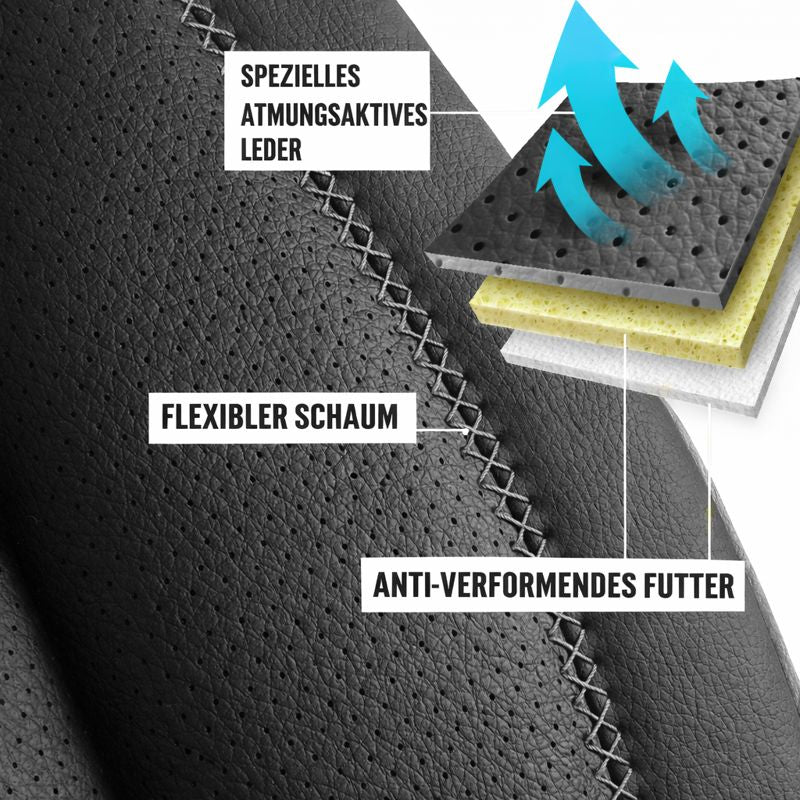 Unsere Sitzbezüge sind auf die spezifischen Sitzformen des jeweiligen Fahrzeugmodells abgestimmt. Die Abmessungen passen exakt zu Sitzfläche, Rückenlehne, Kopfstützen und Armlehnen, sodass die Bezüge straff anliegen, ohne Falten zu werfen oder zu verrutschen.